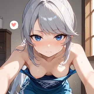 【AIイラスト】マイクロビキニを着て顔を赤らめてるツインテ童顔巨乳美少女のエロ画像【二次元】