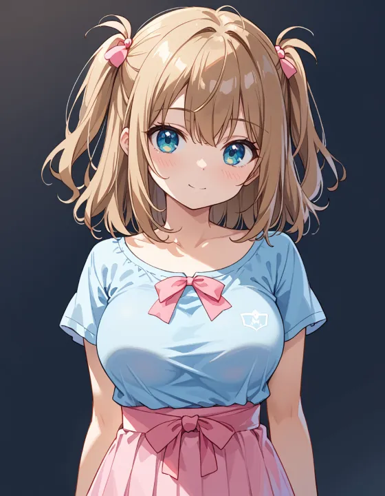 キャラクターの細かい設定やこだわりがあるわけではありませんが、{薄茶色の髪、ツーサイドアップ、童顔、青緑色の瞳、爆乳}の女の子の識別タグとして便利なので名前をつけています。