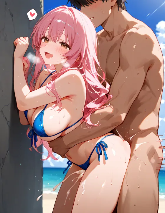 【虹エロ】【夏】ピンク髪デカパイ美少女がビキニえっちしてるエロ画像【AIエロ画像】【ヒナサキアワイ】