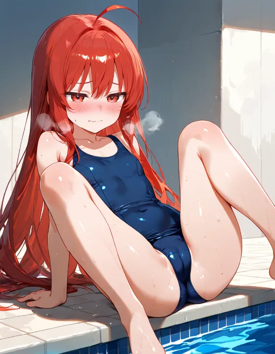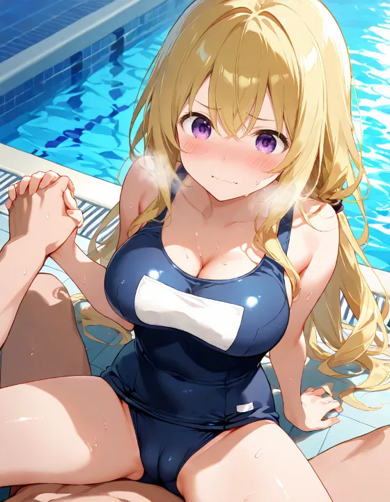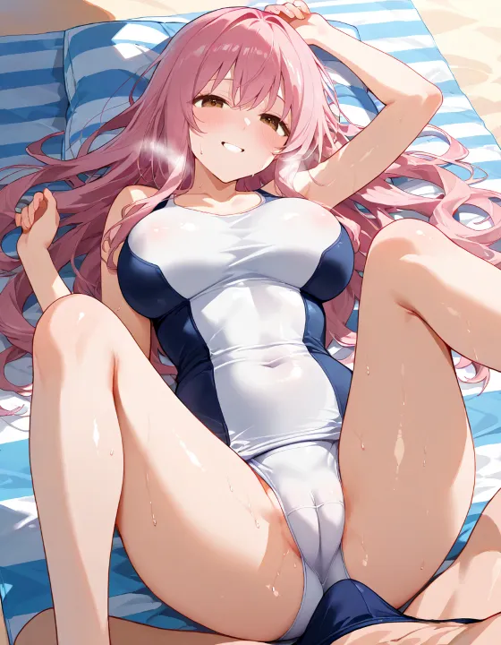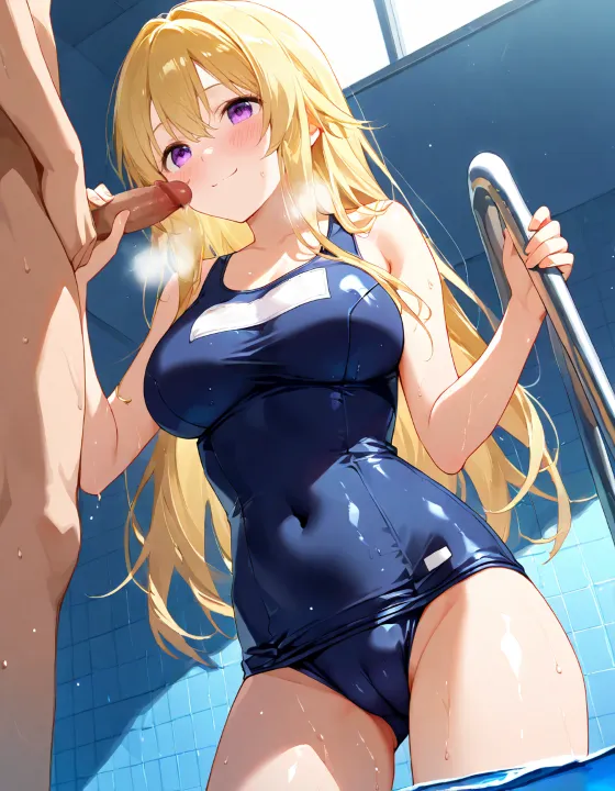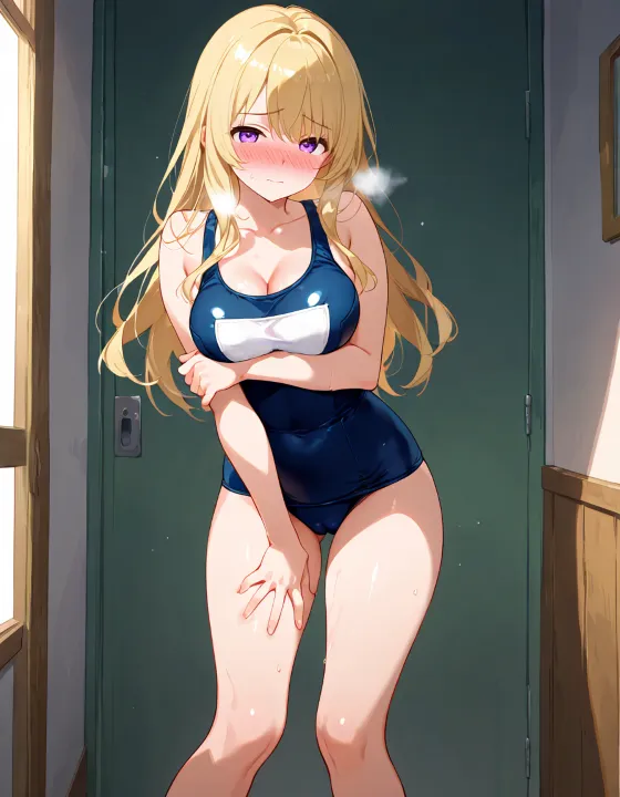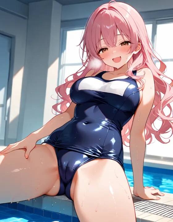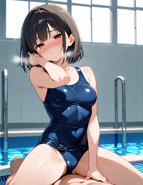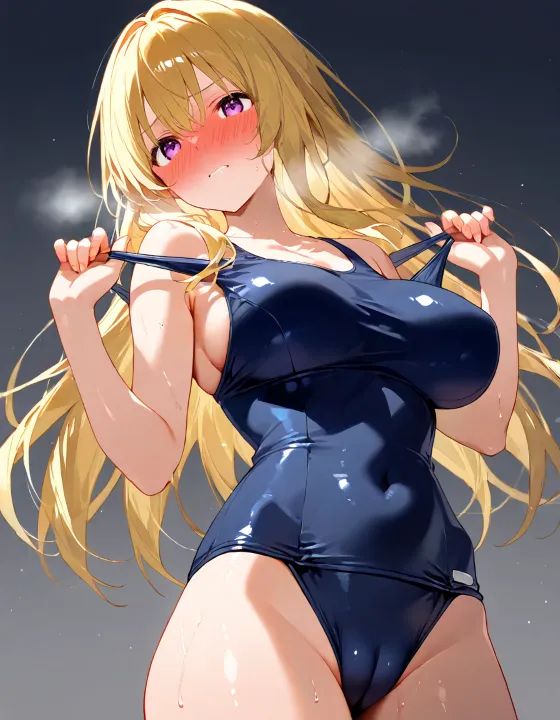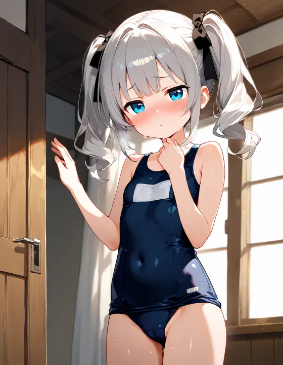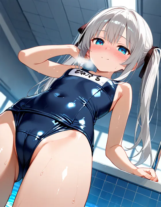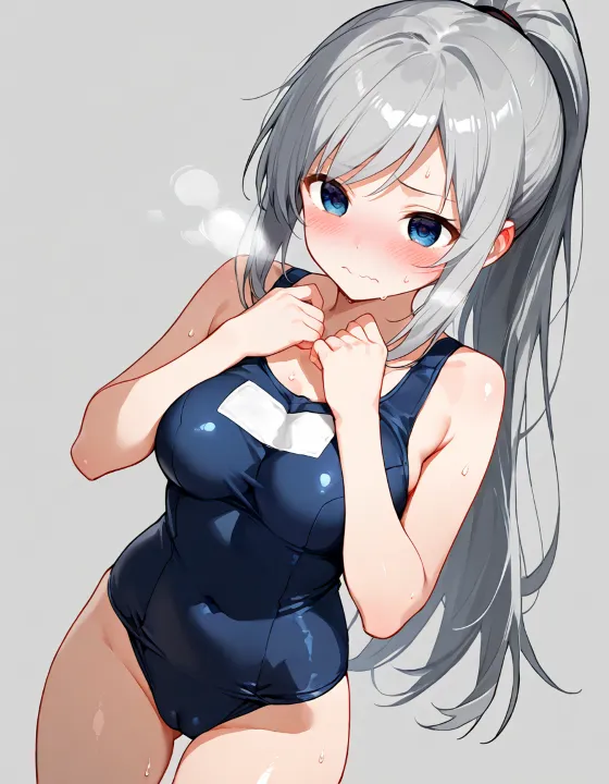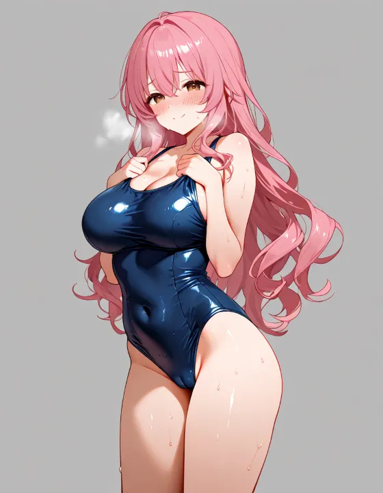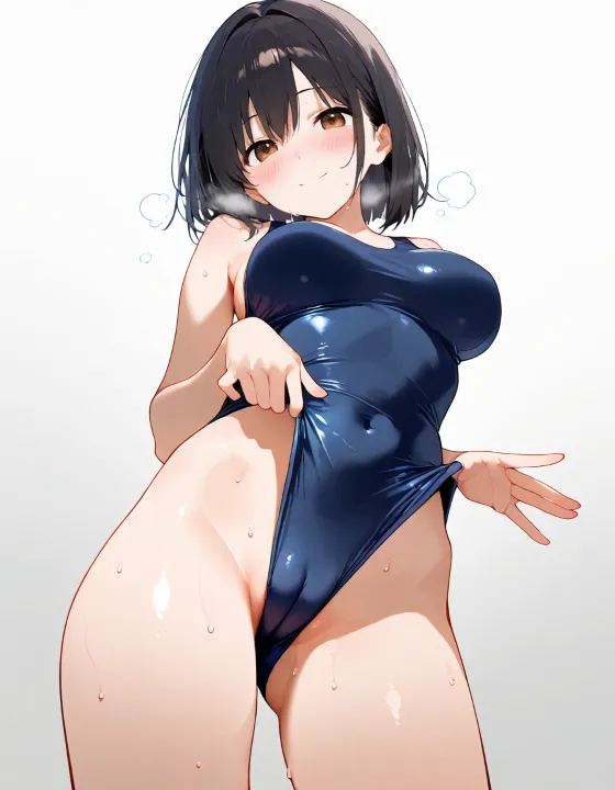 simple background, (school swimsuit, one-piece swimsuit:1.1)