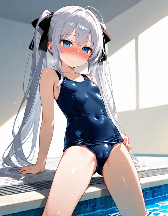 nsfw, 1girl, 15yo, (medium breasts:1.1), light-green eyes, (side ponytail:1.2), (medium hair:0.8), light-blue hair BREAK